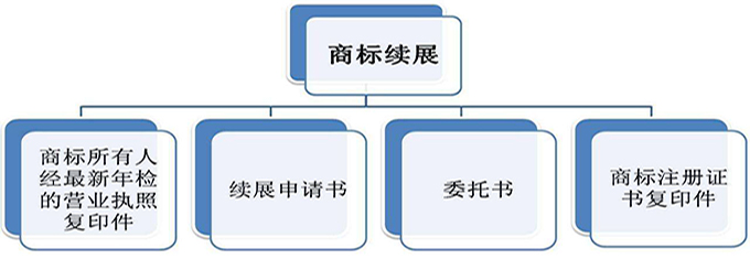 商标续展流程可细分为申请、审查、续展公告、核发续展证明四个流程。