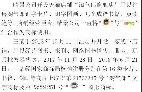 取得上述两项商标后,王某随即于2018年9月17日、18日针对晴景公司网店中的29个商品链接分三次发起投诉,投诉的权利依据是第23224251号图形商标。然而,三次投诉均未果。俗语道“一而鼓,再而衰,三而竭”,王某在经历三次投诉失败后却反其道而行之,“越挫越勇”。2018年12月21日-27日,王某继续以晴景公司网店内所售商品侵犯其第21506345号文字商标“淘气郎”为由分四次针对22个商品发起投诉。2018年10月8日,晴景公司对王某该项商标提出无效宣告异议申请,同年11月9日该申请被受理。2018年9月30日,晴景公司向王某发起投诉时预留的邮箱发送催告函一份,阐明其滥用知识产权投诉进行骚扰的行为对晴景公司的正常经营活动及商誉造成了影响,并要求王某积极行使诉权,否则将提起确认不侵权之诉以证清白。然而,一意孤行的王某并不理会晴景公司的善意提醒。不堪其扰的晴景公司将王某一纸诉状告到法院,指控王某恶意投诉行为构成不正当竞争,要求其停止侵权并赔偿晴景公司经济损失含合理费用共计10万元。经审理认为:(1)晴景公司在案证据显示在王某涉案二项商标申请日前,涉案两项标识经由晴景公司的反复、持续宣传与使用,获得较强显著性并具备识别商品来源的功能,产生商标法保护的必要,晴景公司对该两项标识享有在先权益。(2)经比对,双方标识细节方面相差无几,鉴于晴景公司享有在先权益的涉案二项标识所具有的固有显著性及在使用过程中积累的知名度,王某因巧合设计同一标识并注册的可能性较小,且经仔细辨别,王某抢注商标的主观恶意明显,国家知识产权局已对王某涉案二项商标予以宣告无效,亦印证该事实。(3)王某明知他人在先使用商标,利用他人未及时注册商标的漏洞,以不正当手段抢注他人在先使用并有一定影响的商标,并据此多次投诉导致晴景公司一款商品被下架,主观恶意明显,客观上亦不顾晴景公司发送的催告函反复多次发起投诉干扰了晴景公司的正常经营,使晴景公司遭受利益损失。王某的行为违反诚实信用原则和商业道德,扰乱市场竞争秩序,损害了其他经营者的合法权益,构成不正当竞争行为。根据王某的投诉次数、被投诉商品的下架情况、晴景公司的合理开支等因素判令王某赔偿晴景公司经济损失含合理费用10万元。经营者在生产经营活动中,应遵循自愿、平等、公平、诚信的原则,遵守法律和商业道德。既要注重改进并提升商品及服务的质量,又要注重培育和增进商标、商品外观等商业资源的显著性和知名度,依此相得益彰增强商品声誉和夯实各类商业标识等战略性商业经营资源。商事主体应自我挖潜、自主培育优质品牌,对他人享有在先权益的商业标识合理避让,自觉远离“傍名牌”、“搭便车”、“抢注”等不正当竞争行为,诚信经营。